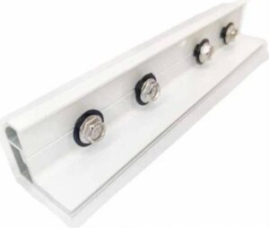 5.5 316 grade nylon coated wire rope. Alluminum Track powder coated. 55 316 L Stiffener SS 304 MB Fastner S5 (304), (SS316) wire rope grill fittings. Available gaps-2", 3", 4" Horizontal & vertical are also installed.